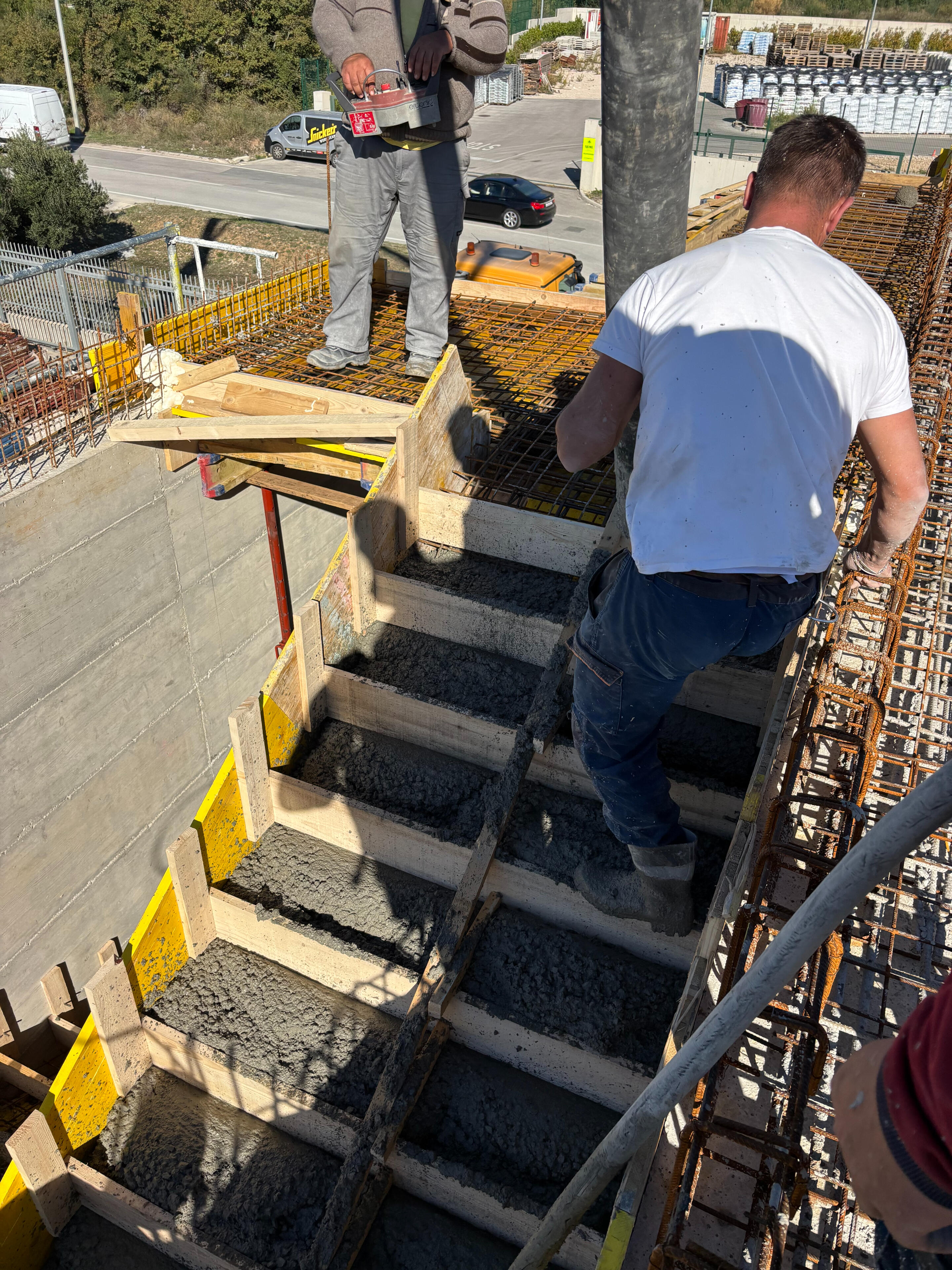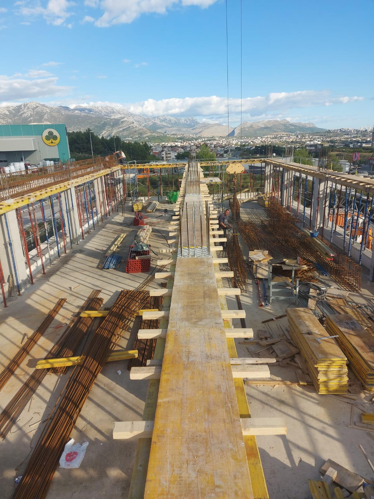 U fotografijama iznad možete vidjeti i faze nedavno realiziranog projekta betoniranja, zidanja i nadogradnje etaže površine 398 m² na poslovnom objektu Morlak u Kaštel Sućurcu, u roku od svega 90 dana.Radovi su obuhvaćali kompletnu izvedbu betonske konstrukcije te zidanje Porotherm Profi opekom, uz vrhunsku organizaciju gradilišta, visoke standarde kvalitete i maksimalnu učinkovitost u svim fazama izvođenja.Projekt je izveden precizno, pouzdano i unutar ugovorenih rokova, na potpuno zadovoljstvo investitora.